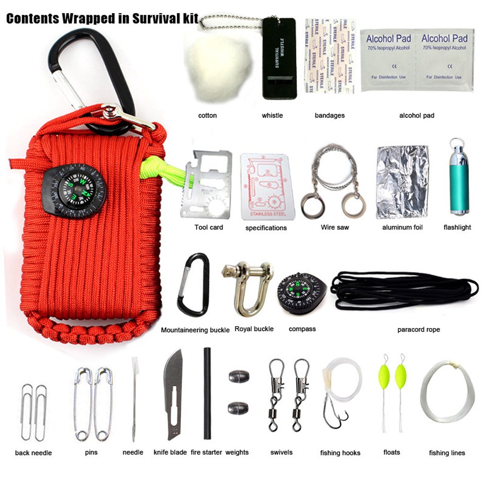 This survival kit contains 30 kinds of survival tools, with a wide range of use. It uses a large length of high-quality parachute rope that is close to 26 feet, and can withstand 550 pounds of weight. This pack has a quick dismantling function, in an emergency you can quickly use the survival tool inside.